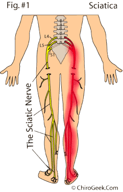 SciaticaWhat is the Sciatic Nerve?![]() The Sciatic nerve is the main nerve traveling down the leg. This nerve starts in the spine and runs down the back of each leg. This nerve controls the muscles of the back of the knee and lower leg and provides sensation to the back of the thigh, part of the lower leg, and the sole of the foot. What Is Sciatica?Sciatica is pain associated with the sciatic nerve which usually originates higher along the spinal cord when nerve roots become compressed or damaged from narrowing of the vertebral column or from a slipped disk. Symptoms can include tingling, numbness, or pain, which radiates to the buttocks, legs and feet. Common causes of Sciatica include: